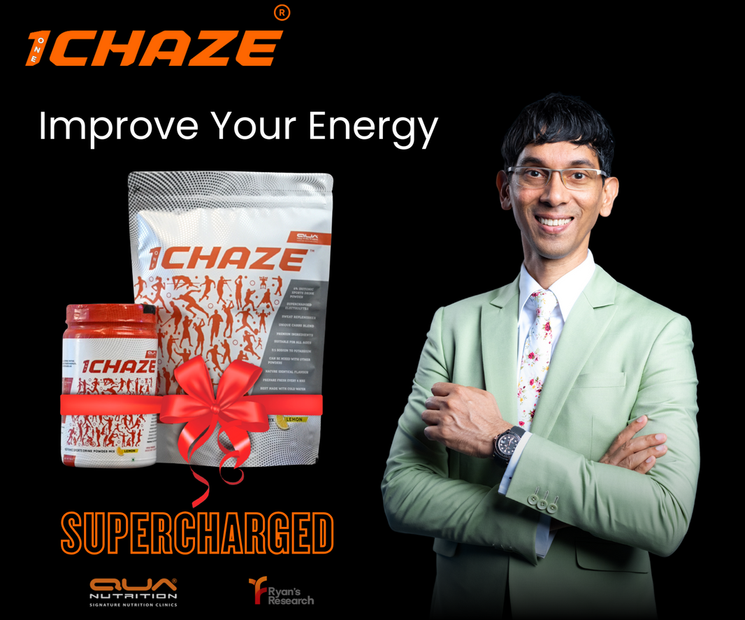 1CHAZE is a flagship product under Qua Nutrition, India’s premier sports nutrition consultancy. With a legacy of working with athletes like Virat Kohli, PV Sindhu, and Olympic medalists, Qua Nutrition specializes in personalized nutrition strategies that drive performance and recovery. The same science and dedication behind Qua’s elite nutrition plans are infused into 1CHAZE, ensuring uncompromised quality and effectiveness in every sip.